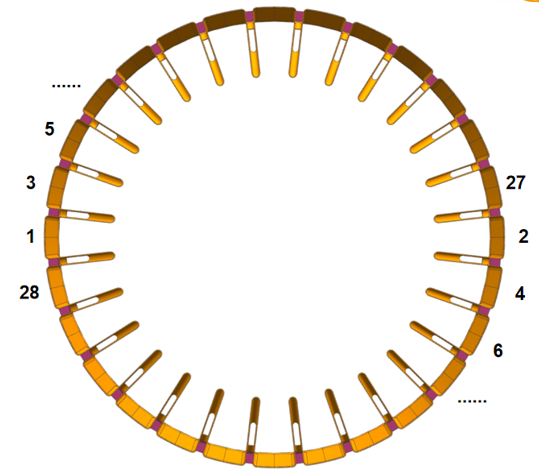 纵向焊缝顺序:先焊第一条(从大直径端向小直径端焊),再焊对向,再焊相邻焊缝,再焊相邻对向焊缝......,具体见以下示意图